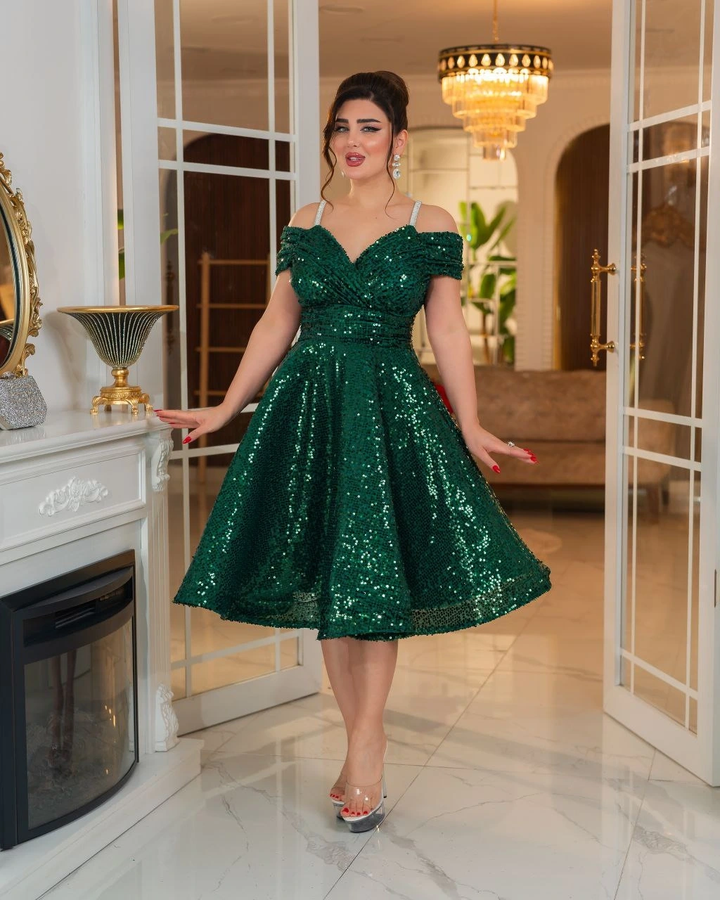 Bu şık altın payetli abiye elbise, göz alıcı ışıltısıyla özel davetlerde dikkat çekmek isteyenler için ideal bir seçimdir. Üst kısmındaki drapeli tasarım ve omuz açık detay, elbiseye hem modern hem de zarif bir görünüm kazandırır. Bele oturan kesimi ve kloş etek yapısı sayesinde vücuda güzel bir form verirken yürüdükçe ışığı yansıtan payetler elbiseye hareketli bir parlaklık katar. Nişan, düğün, mezuniyet ve özel günlerde rahatlıkla tercih edilebilecek gösterişli bir abiye modelidir.