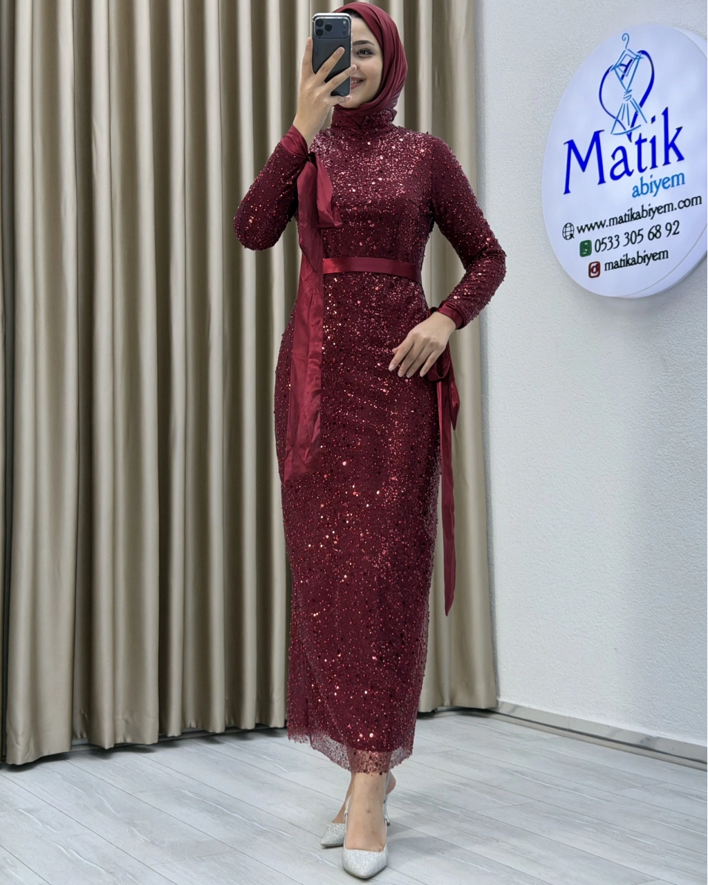 • Kumaş Türü: Payet ve boncuk işlemeli özel tasarım kumaş
