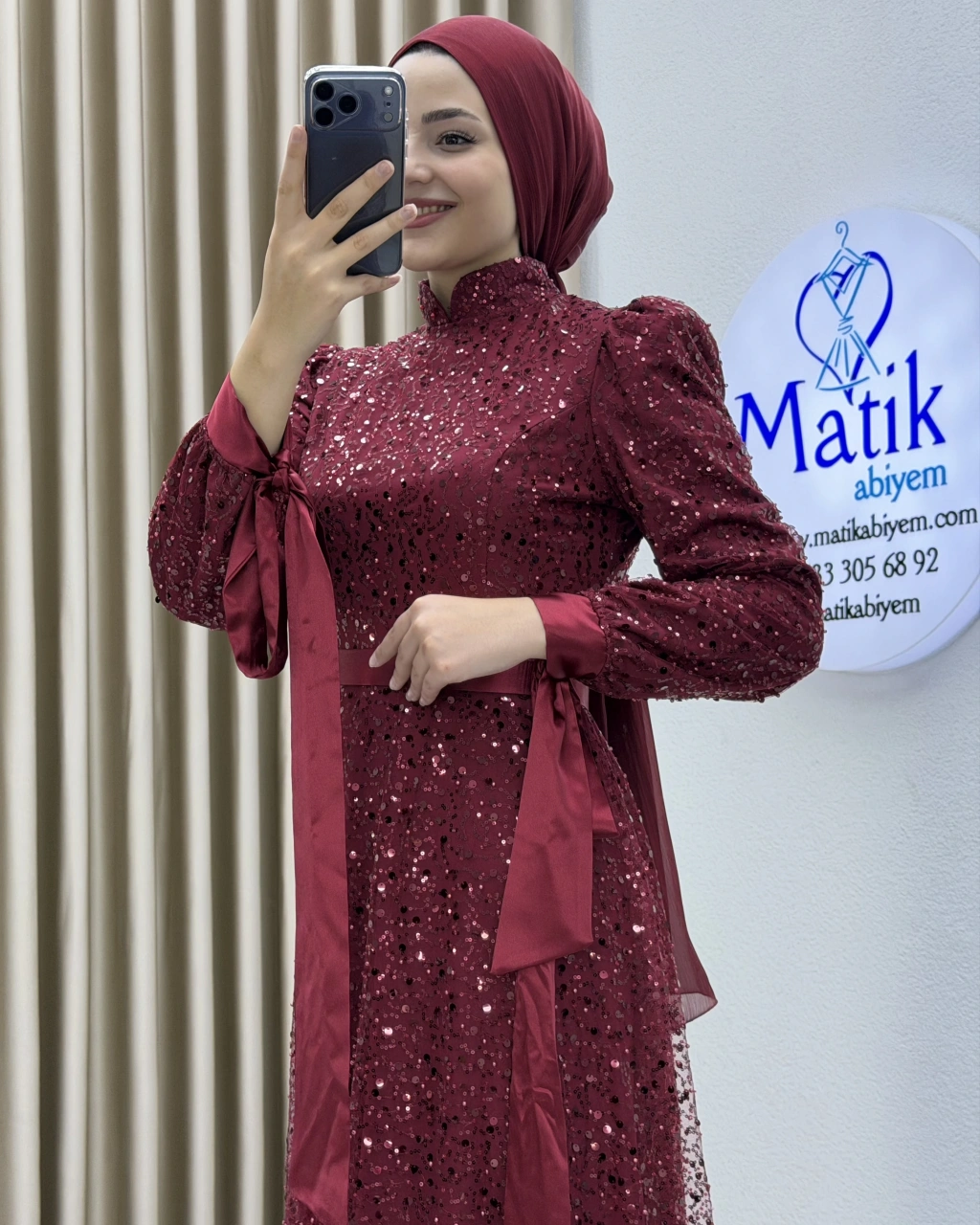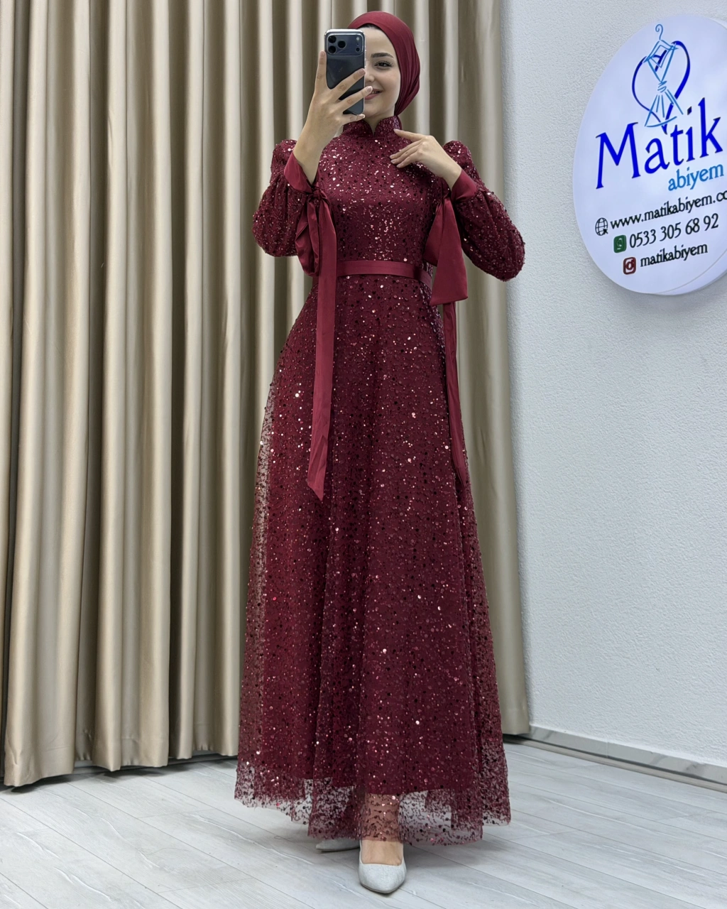 • Kumaş Türü: Payet ve boncuk işlemeli özel tasarım kumaş
