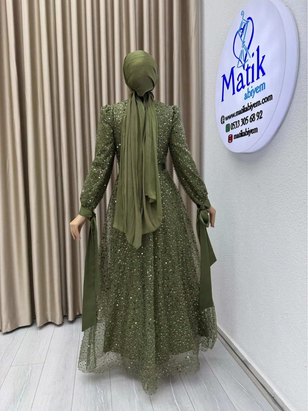• Kumaş Türü: Payet ve boncuk işlemeli özel tasarım kumaş
