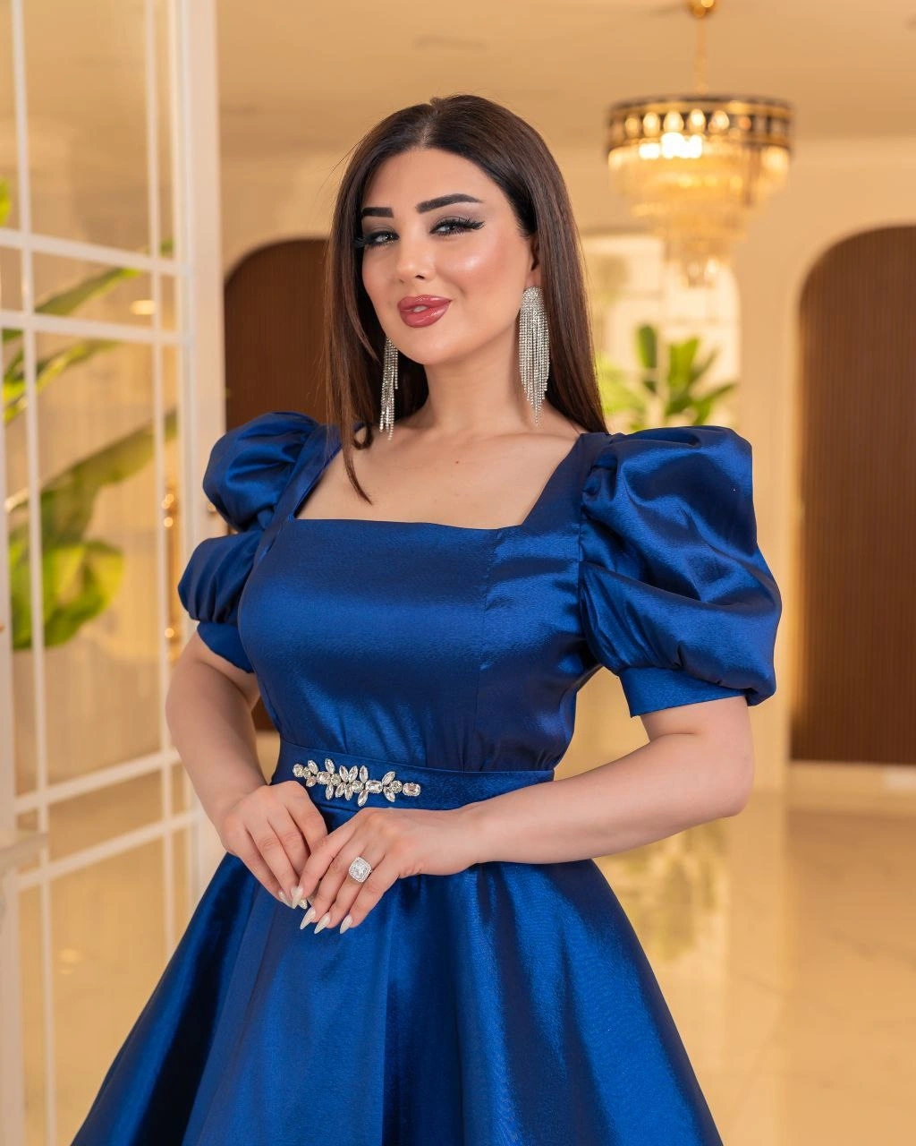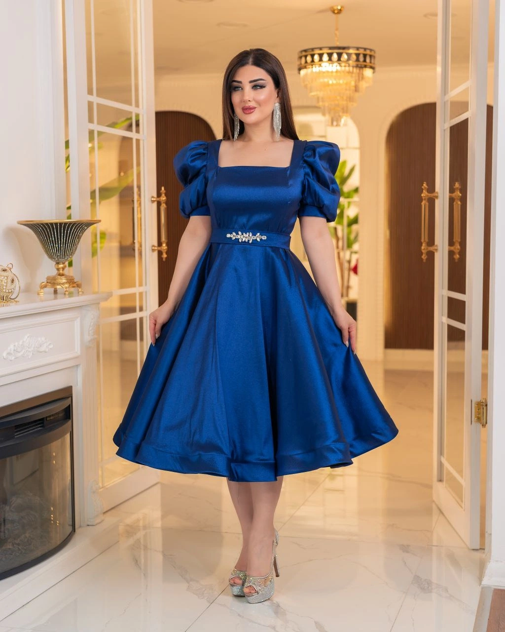 Zarafeti ve feminen duruşu bir araya getiren bu elbise, kaliteli tafta kumaştan üretilmiştir. Parlak tok yapısı sayesinde formunu korur, hacimli eteğiyle göz alıcı bir silüet sunar. Kare yaka detayı ve kısa balon kolları modern bir şıklık katarken, bel kısmındaki taş yapışma taş aksesuarlı kemer tasarımı zarifçe tamamlar. Hem özel davetlerde hem de şık organizasyonlarda rahatlıkla tercih edebilirsiniz. Konforlu yapısı ve etkileyici görünümüyle stilinize sofistike bir dokunuş katar.
