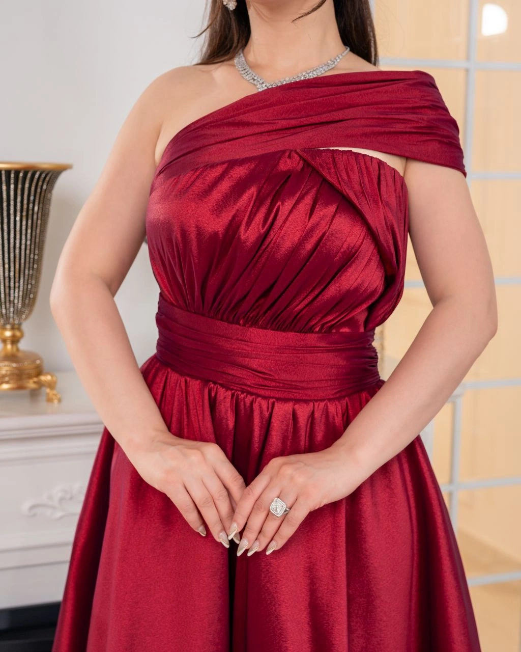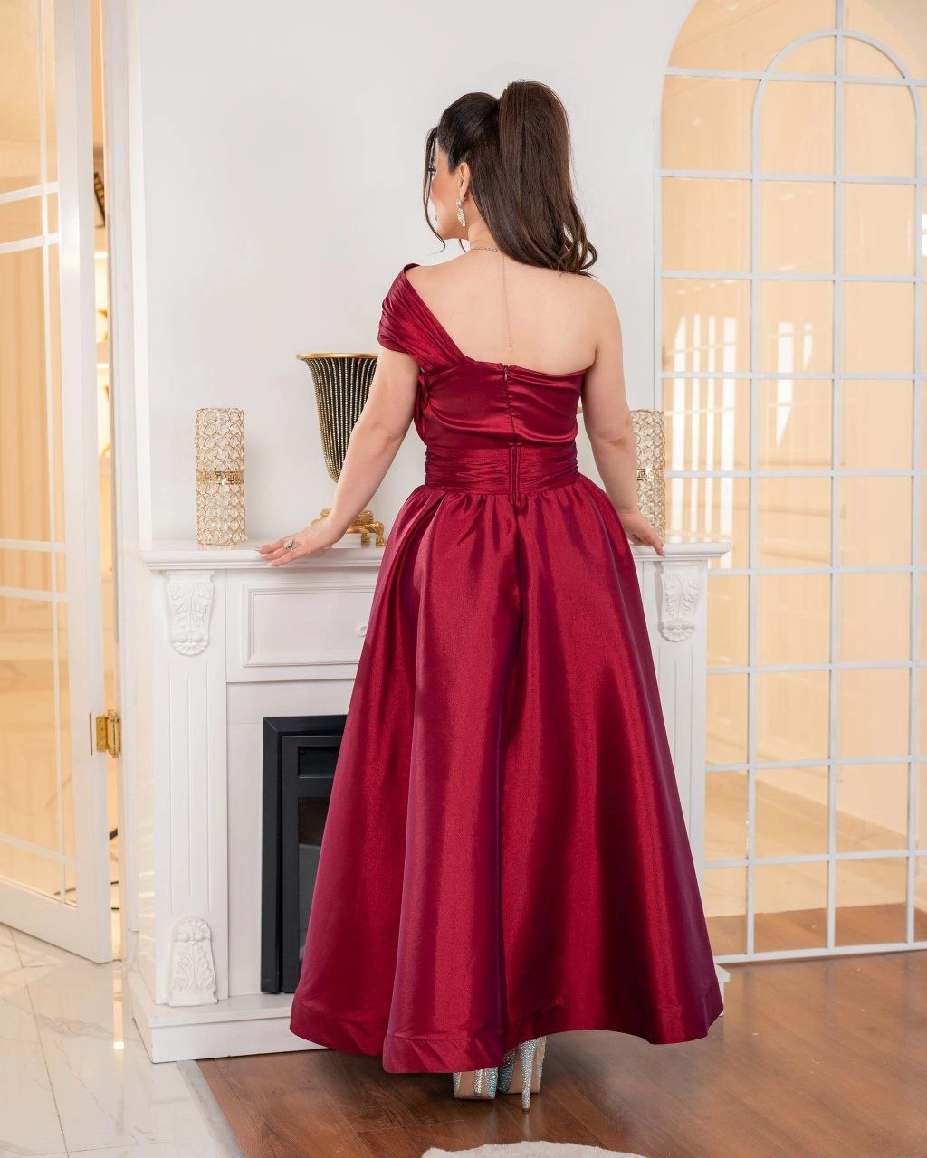 Görseldeki üründe kullanılan tafta kumaş, akıcı ama aynı zamanda dik duran yapısıyla eteğin dolgun ve düzgün görünmesini sağlar. Işığı nazikçe yansıtan dokusu, elbiseye lüks ve göz alıcı bir hava katar. Kırışmaya karşı dayanıklı olması, uzun süreli kullanımlarda da şıklığını korumasına yardımcı olur.