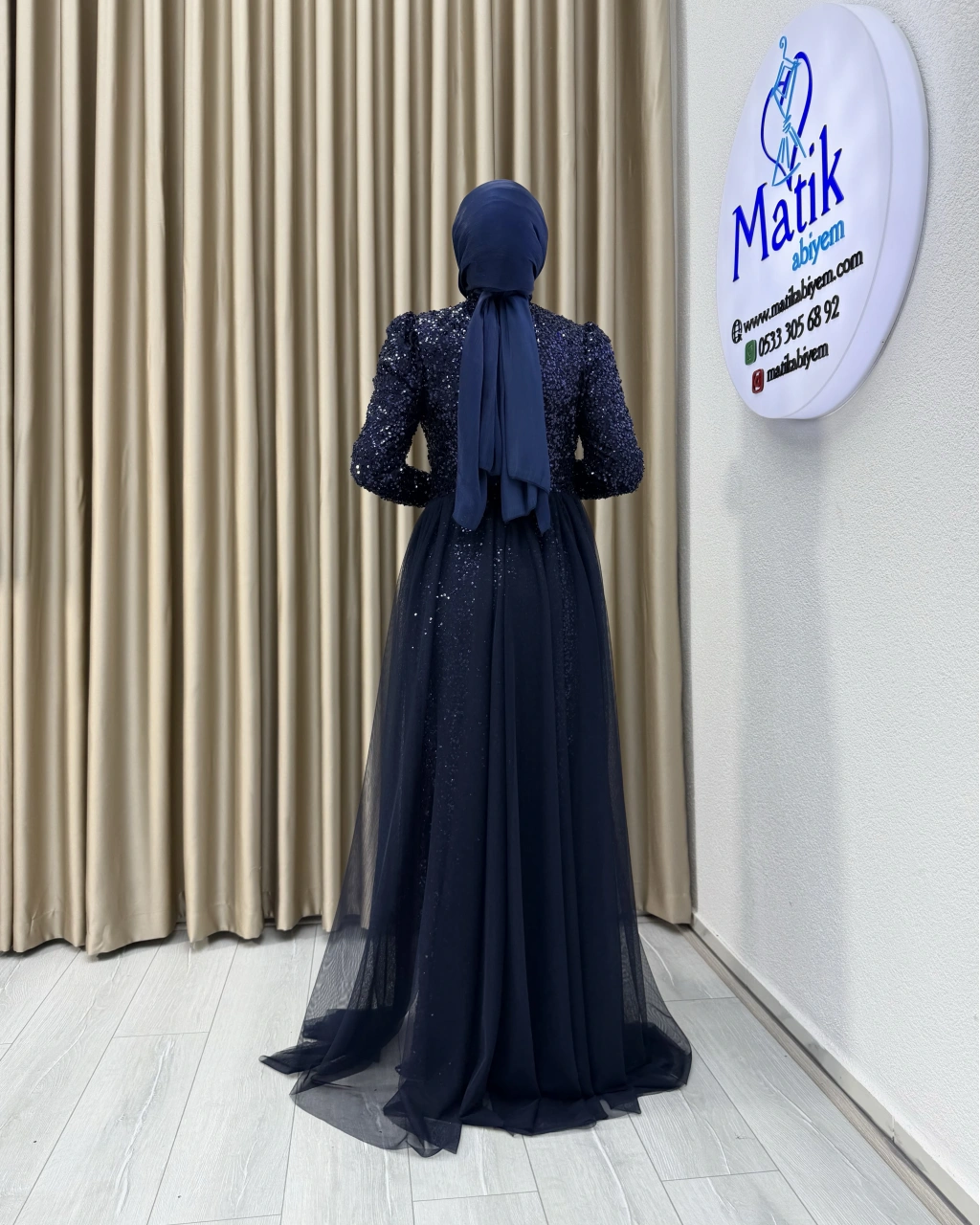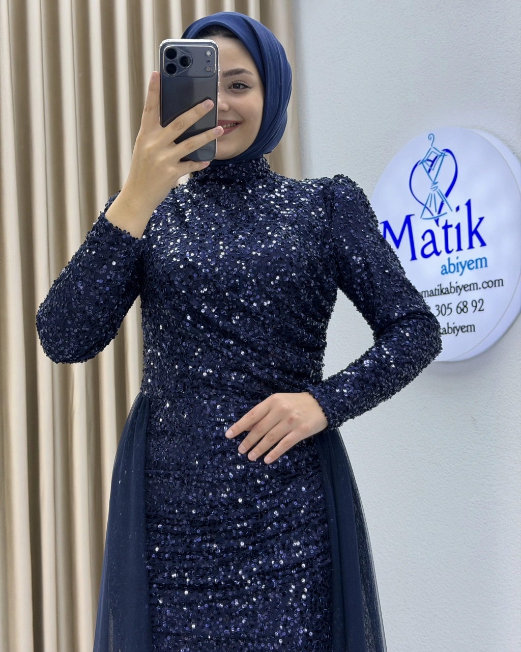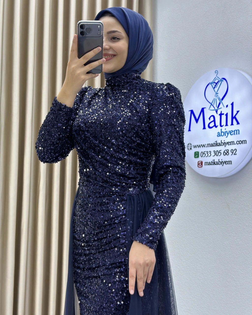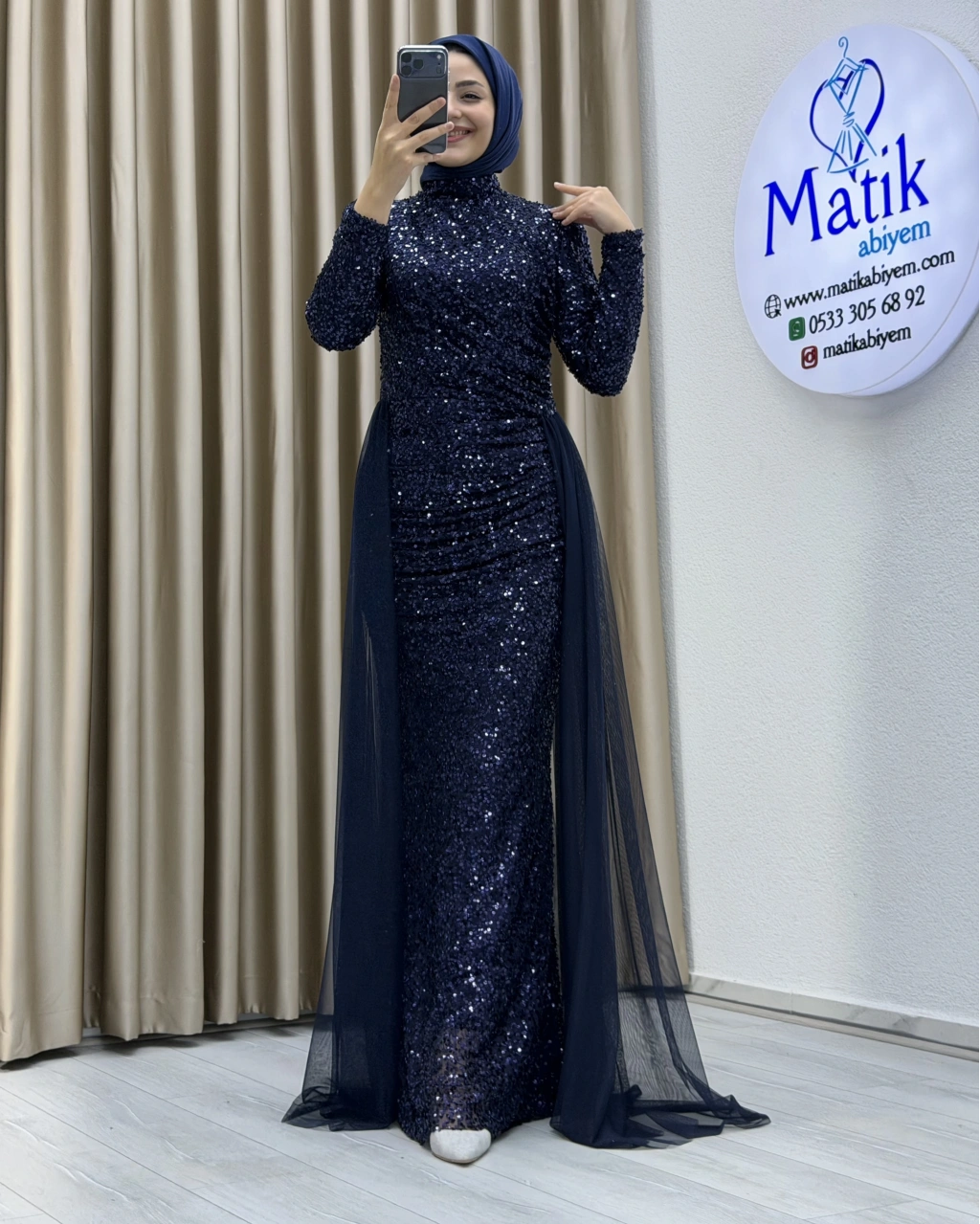 Işıltıyı zarafetle buluşturan Boru Payet ve Tül Abiye, özel günlerinize büyüleyici bir dokunuş katar. Üst bölümdeki yoğun payet işlemeler modern bir şıklık sağlarken, etek kısmındaki yumuşak tül katmanları elbiseye romantik ve akıcı bir görünüm verir. Vücuda oturan formuyla silueti kusursuz bir şekilde ortaya çıkaran bu tasarım; nişan, söz, mezuniyet ve tüm özel davetlerde göz kamaştırmak isteyenler için ideal bir seçimdir.