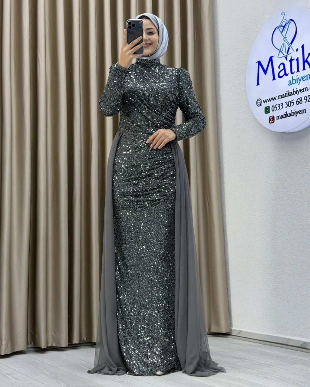 Yoğun Payet İşleme: Üst bedendeki parlak ve kaliteli payetler ışığı mükemmel şekilde yansıtarak elbiseye göz alıcı bir görünüm kazandırır.