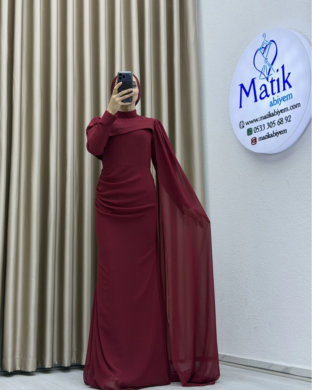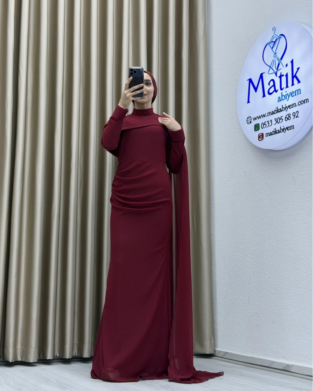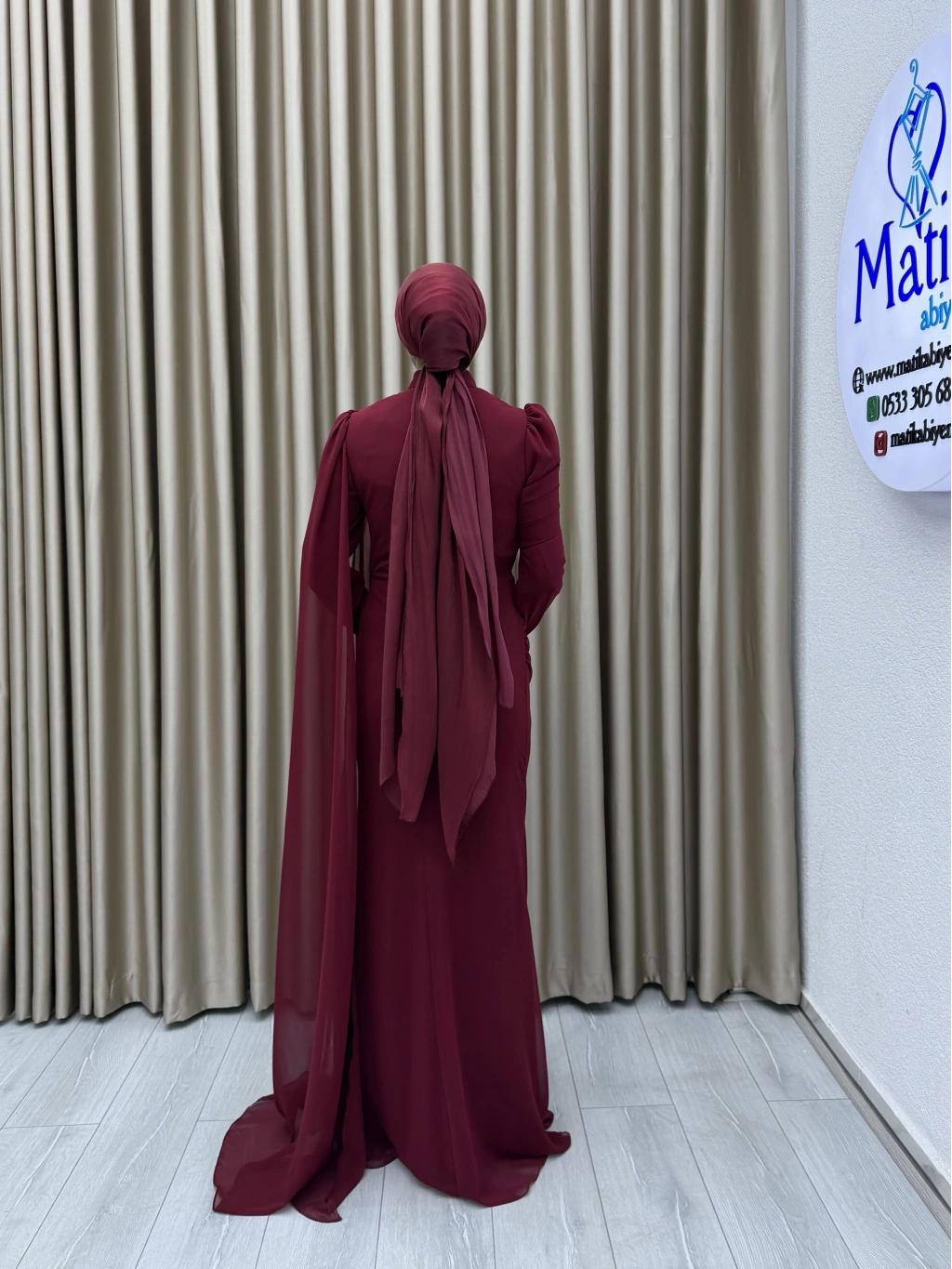 Uzun kollu yapısı ve dökümlü formu, hem şık hem de ölçülü bir stil arayanlar için ideal bir tercih oluşturur. Elbisenin arka ve yan kısımlarında yer alan hafif transparan dökümlü parça, tasarıma zarif bir akış kazandırarak klasik görünümü modern bir dokunuşla tamamlar. Özel gün kombinlerinde topuklu ayakkabılar ve minimal aksesuarlarla rahatlıkla kullanılabilir.