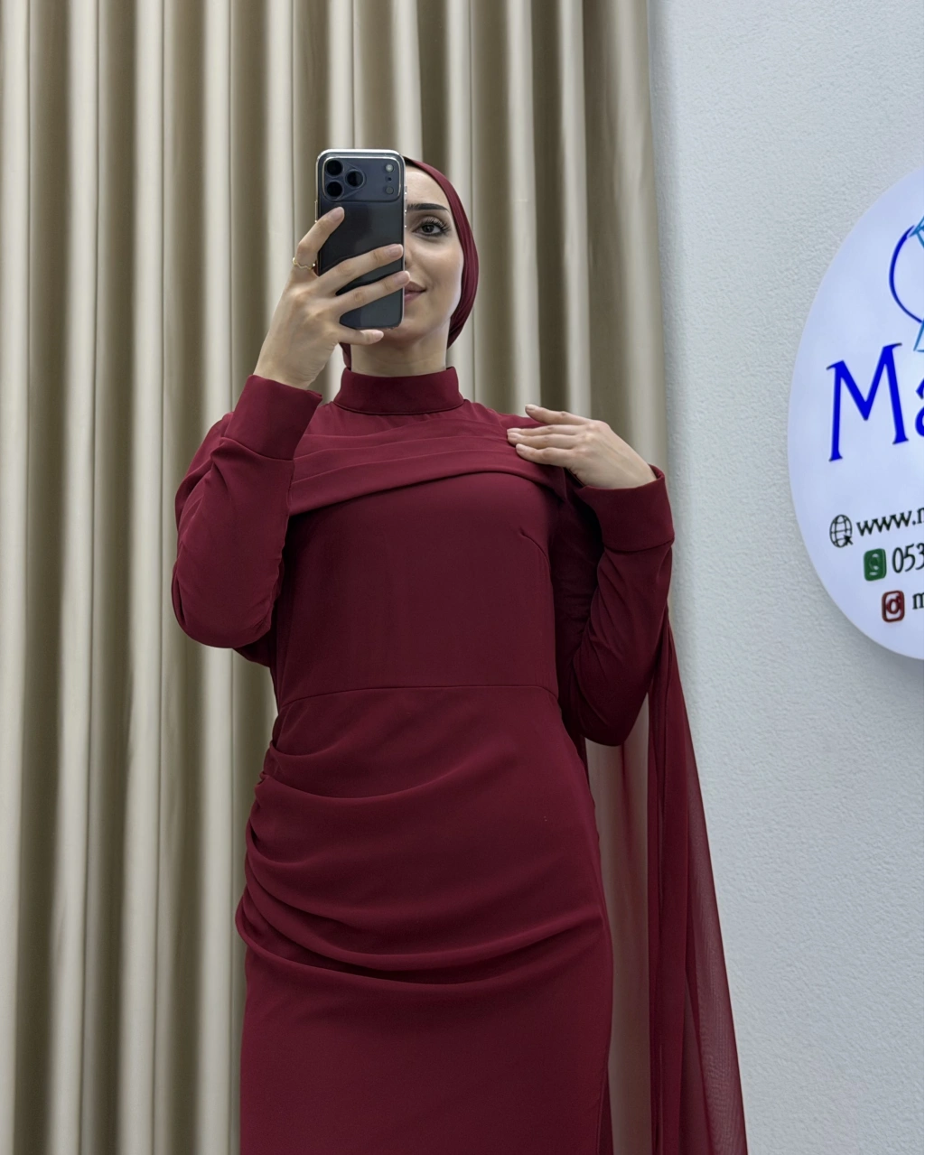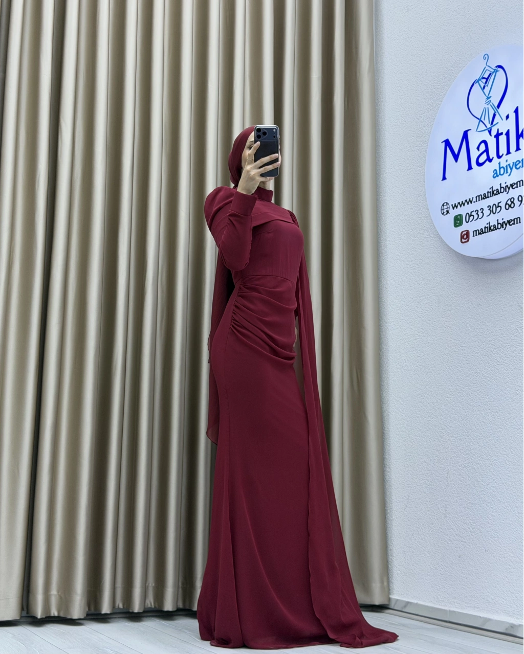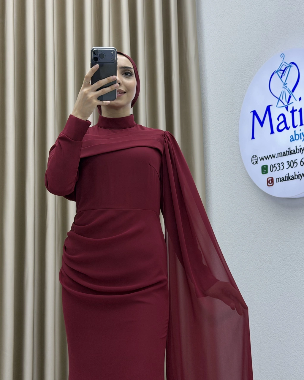 Uzun kollu yapısı ve dökümlü formu, hem şık hem de ölçülü bir stil arayanlar için ideal bir tercih oluşturur. Elbisenin arka ve yan kısımlarında yer alan hafif transparan dökümlü parça, tasarıma zarif bir akış kazandırarak klasik görünümü modern bir dokunuşla tamamlar. Özel gün kombinlerinde topuklu ayakkabılar ve minimal aksesuarlarla rahatlıkla kullanılabilir.