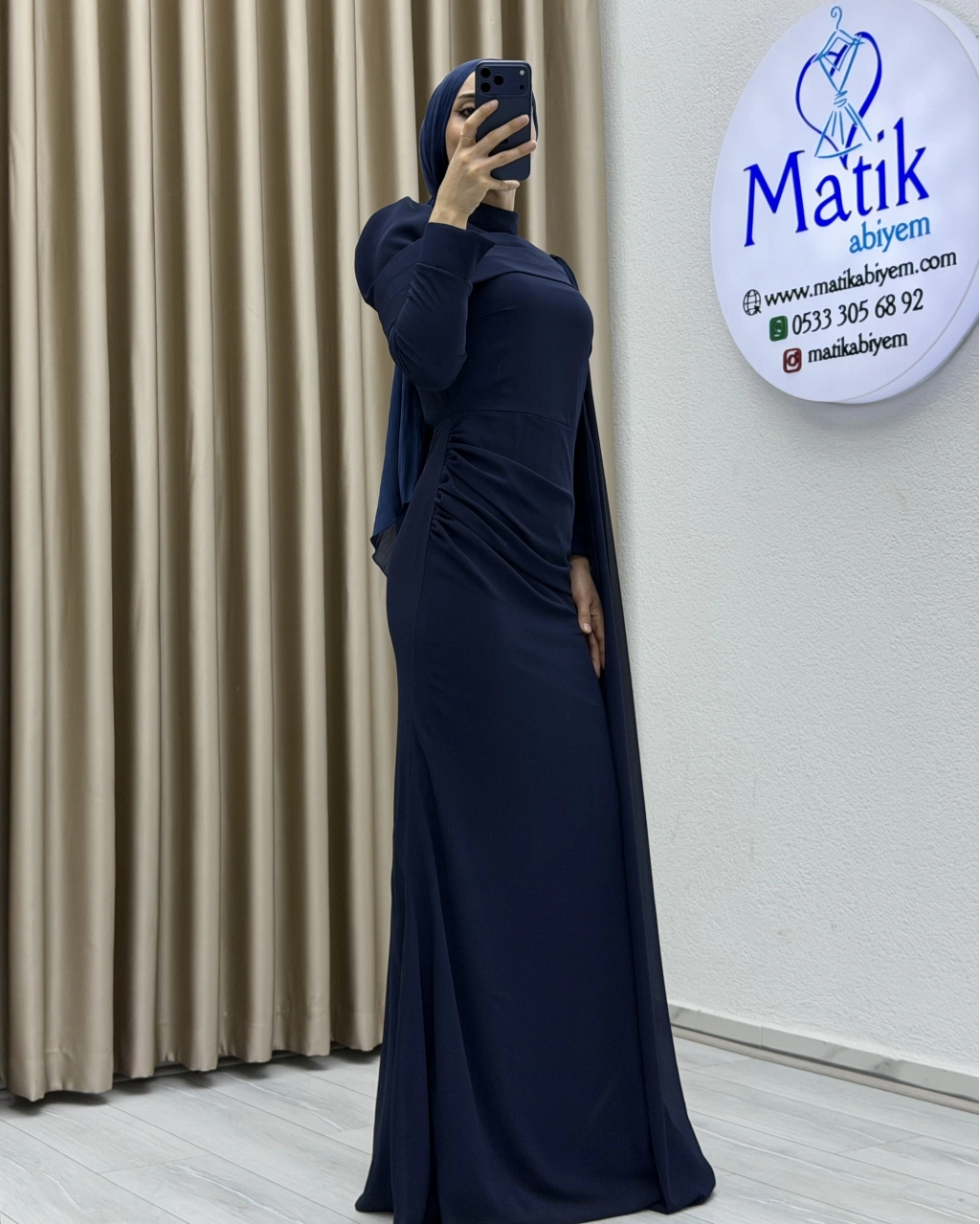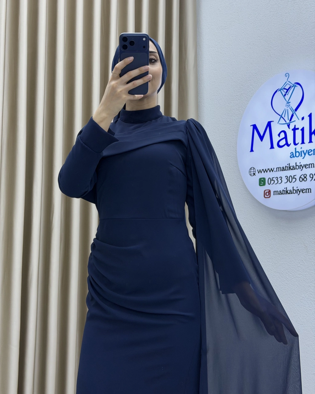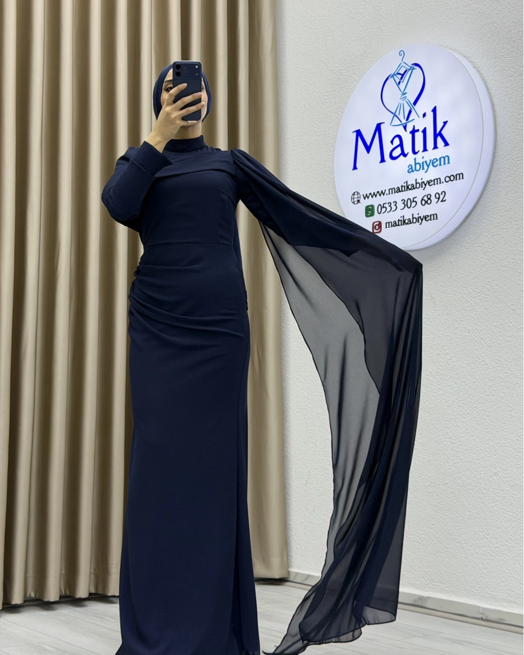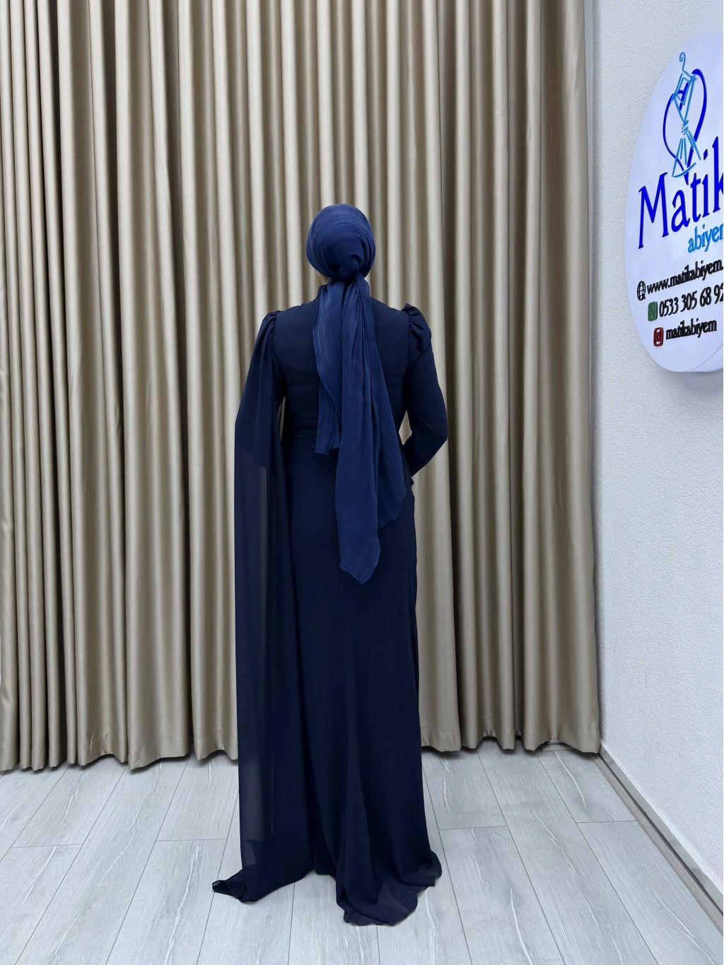 Uzun kollu yapısı ve dökümlü formu, hem şık hem de ölçülü bir stil arayanlar için ideal bir tercih oluşturur. Elbisenin arka ve yan kısımlarında yer alan hafif transparan dökümlü parça, tasarıma zarif bir akış kazandırarak klasik görünümü modern bir dokunuşla tamamlar. Özel gün kombinlerinde topuklu ayakkabılar ve minimal aksesuarlarla rahatlıkla kullanılabilir.