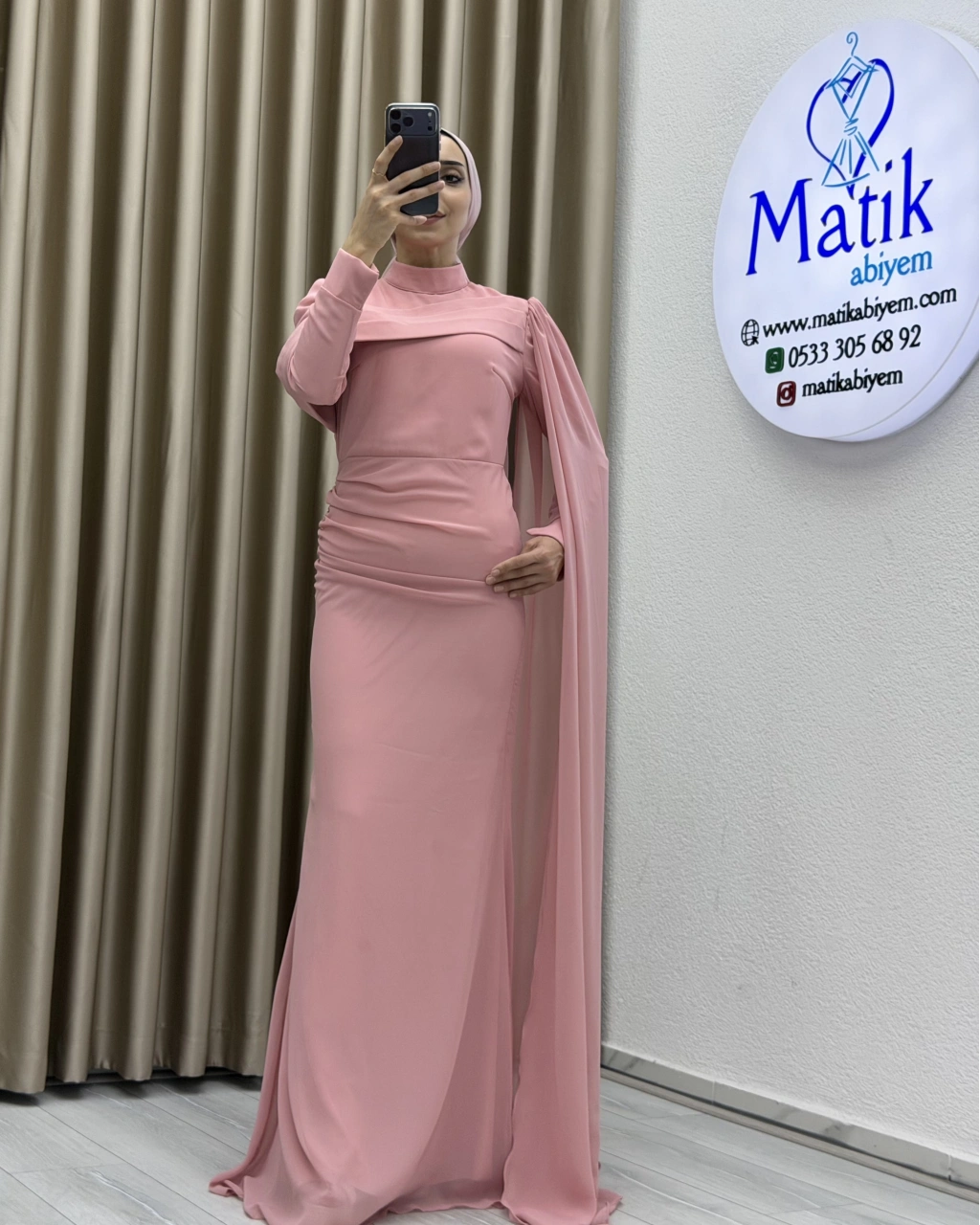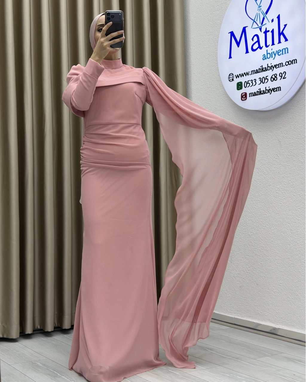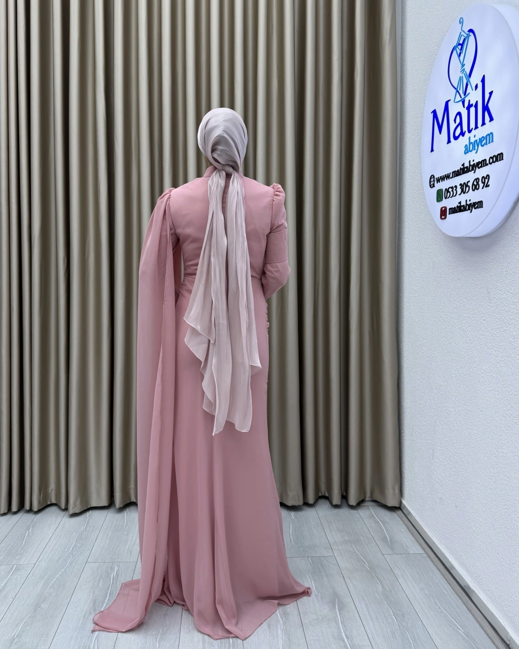 Uzun kollu yapısı ve dökümlü formu, hem şık hem de ölçülü bir stil arayanlar için ideal bir tercih oluşturur. Elbisenin arka ve yan kısımlarında yer alan hafif transparan dökümlü parça, tasarıma zarif bir akış kazandırarak klasik görünümü modern bir dokunuşla tamamlar. Özel gün kombinlerinde topuklu ayakkabılar ve minimal aksesuarlarla rahatlıkla kullanılabilir.