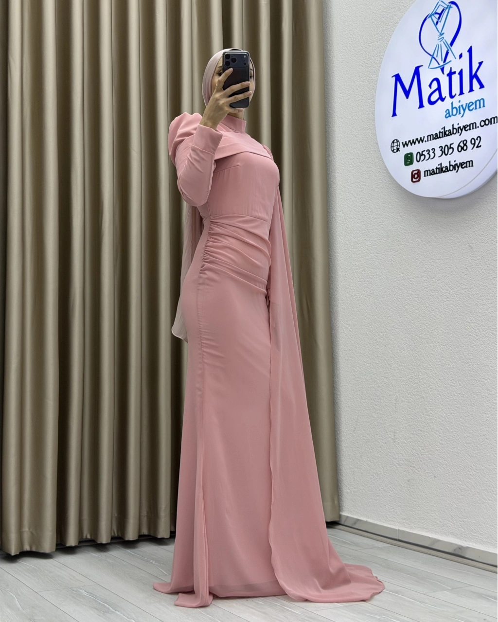 Zarif ve modern çizgileri bir araya getiren bu uzun elbise, özel günlerden davetlere kadar pek çok farklı ortamda şıklığıyla öne çıkar. Akıcı kumaş yapısı sayesinde vücuda nazikçe oturur ve gün boyu konforlu bir kullanım sunar. Bel kısmındaki drapeli detaylar, silueti daha dengeli ve estetik gösterirken tasarıma hareket katar.
