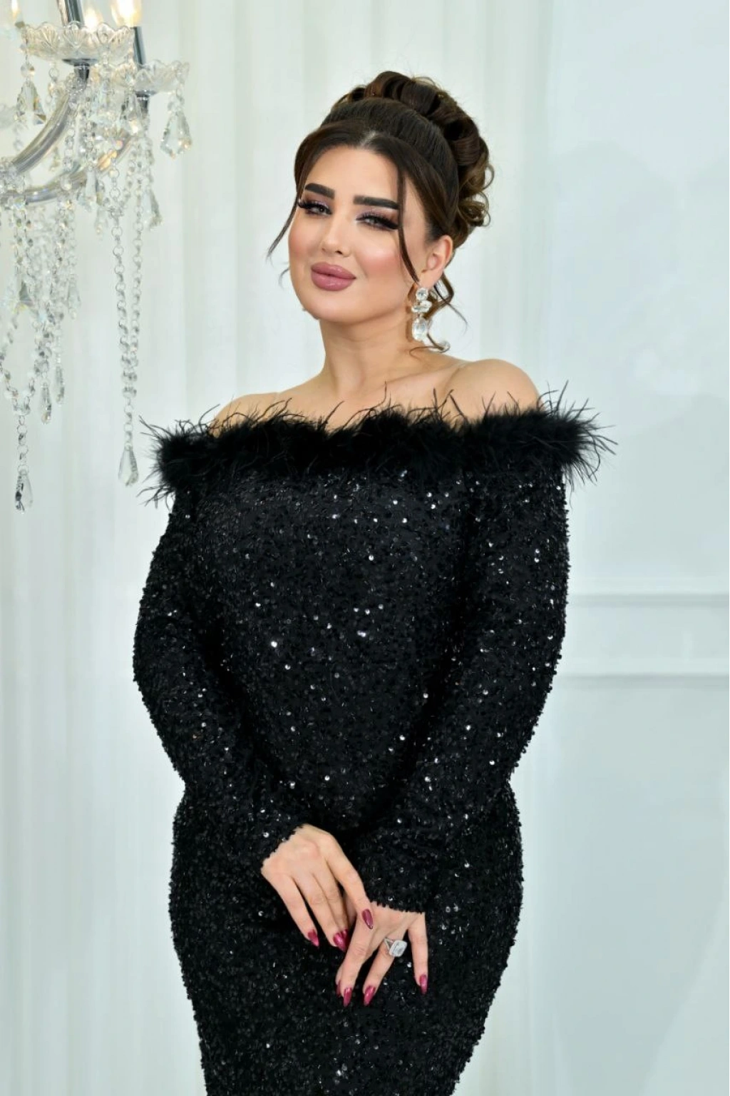 • Zarafeti ve ışıltıyı bir arada sunan bu payet işlemeli pudra pembe elbise, özel davetlerde göz kamaştırmak isteyenler için tasarlandı. Omuz kısmındaki yumuşak tüylü detay, elbiseye sofistike ve romantik bir hava katarken, tamamen payet kaplı kumaşı ışığı mükemmel şekilde yansıtarak büyüleyici bir görünüm oluşturur. Vücuda oturan kesimi sayesinde feminen hatları öne çıkaran elbise, şık saç ve aksesuarlarla kombinlendiğinde kusursuz bir gece stili sunar. Özel davetler, nişan, düğün ve akşam etkinlikleri için