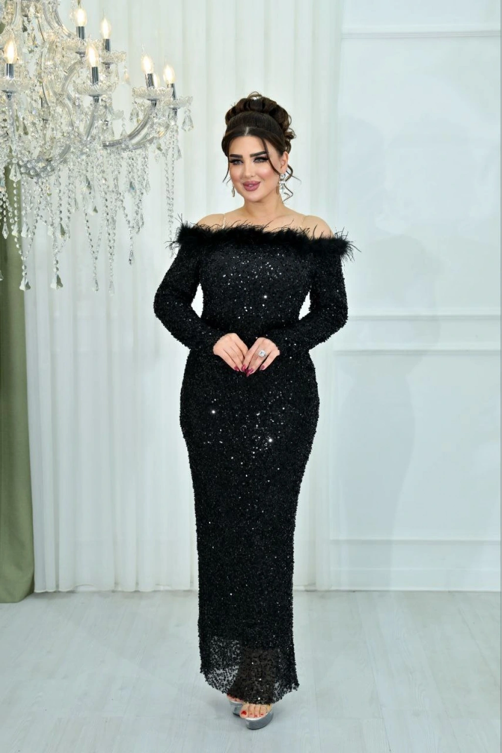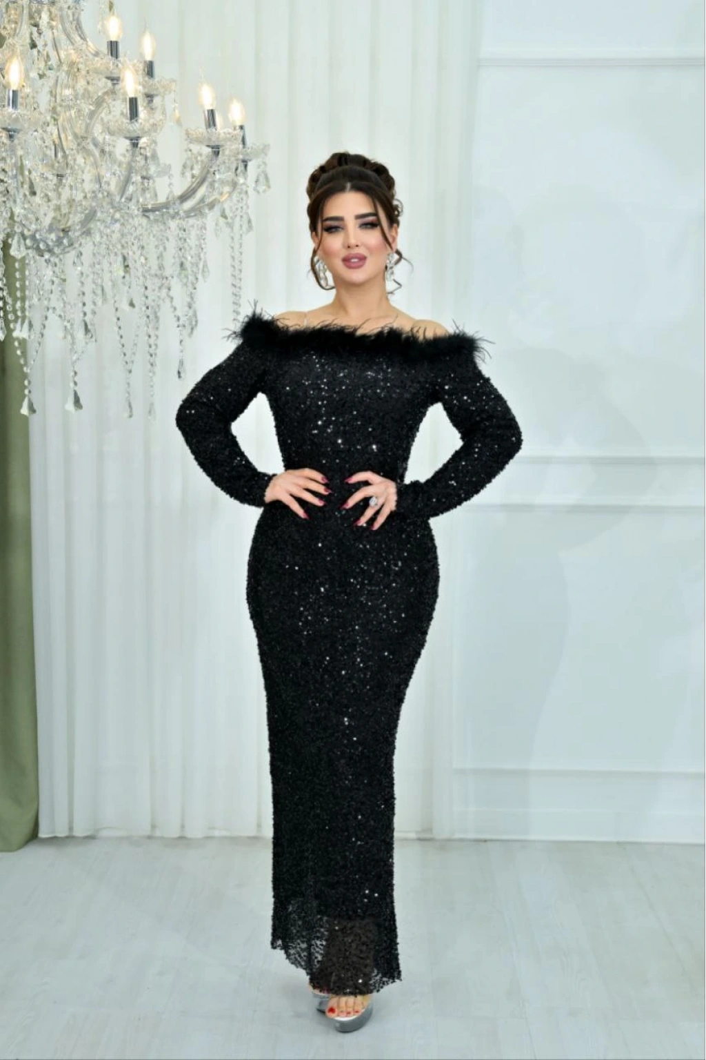 • Kumaş: Tamamen payet işlemeli esnek kumaş