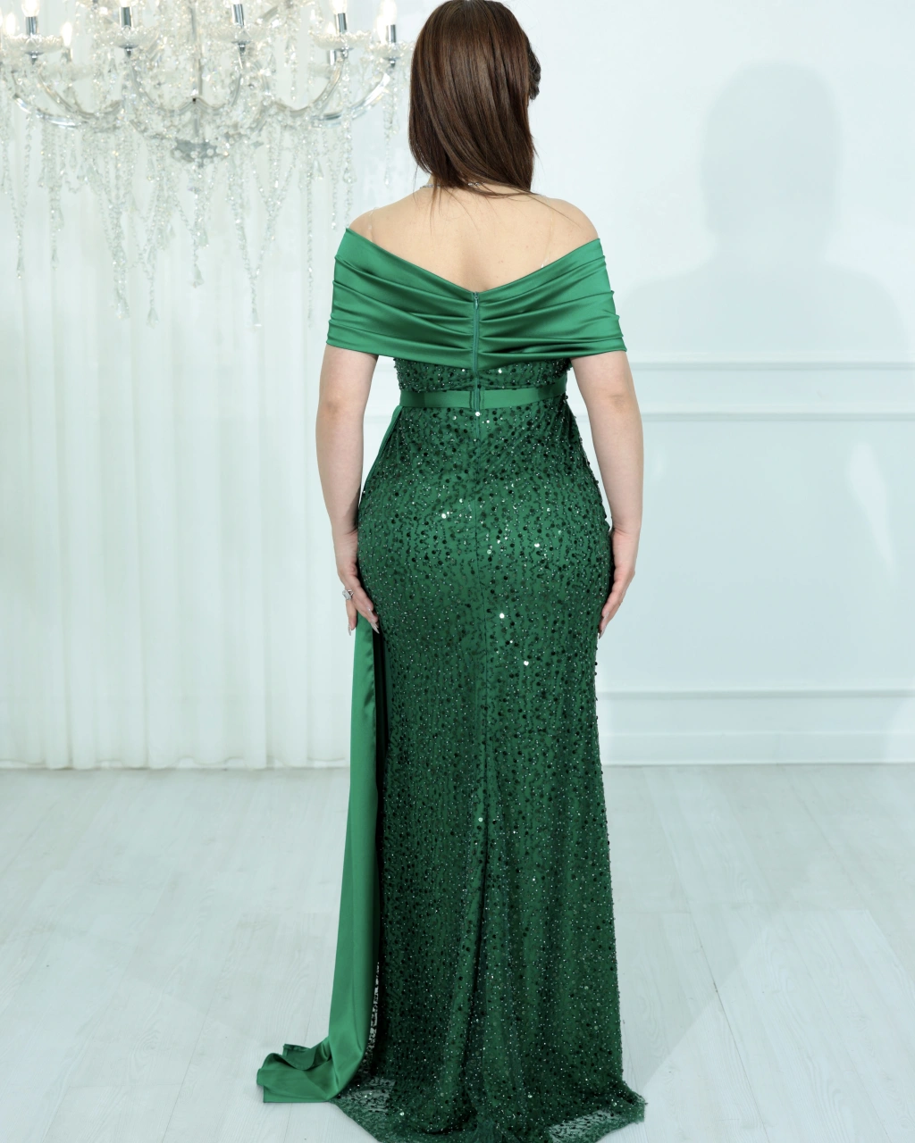 - Zarif inci detaylarıyla süslenmiş, payetli saten tasarımıyla göz alıcı bir görünüm sunar.