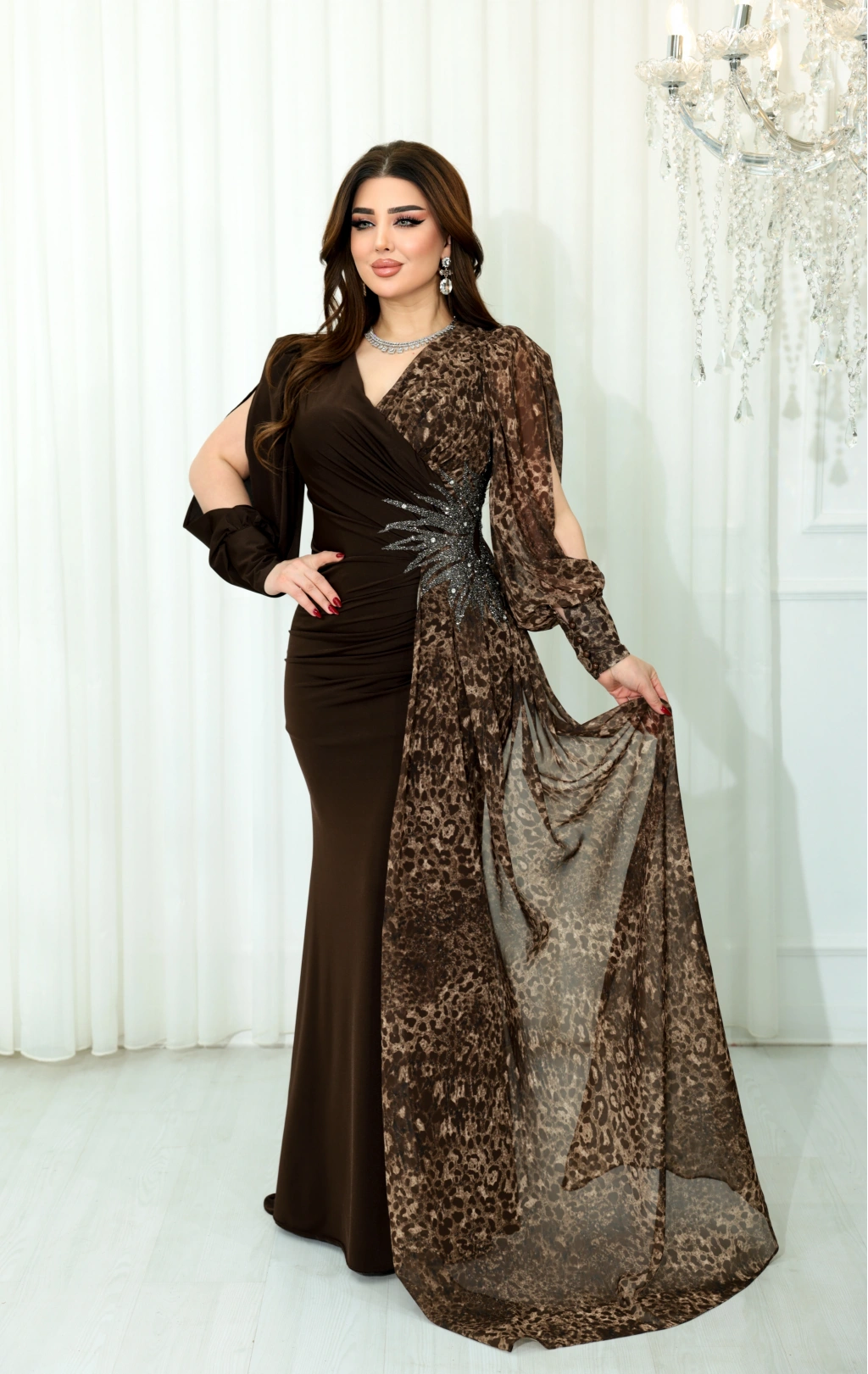 - Zarif leopar desenli dijital şifon baskısı ile göz alıcı bir görünüm sunar.- Taş aksesuar detaylarıyla şıklığınızı tamamlar, özel günlerde parlayan bir stil oluşturmanızı sağlar.