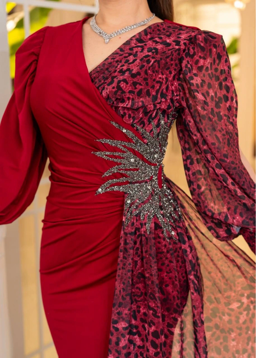 - Zarif leopar desenli dijital şifon baskısı ile göz alıcı bir görünüm sunar.- Taş aksesuar detaylarıyla şıklığınızı tamamlar, özel günlerde parlayan bir stil oluşturmanızı sağlar.