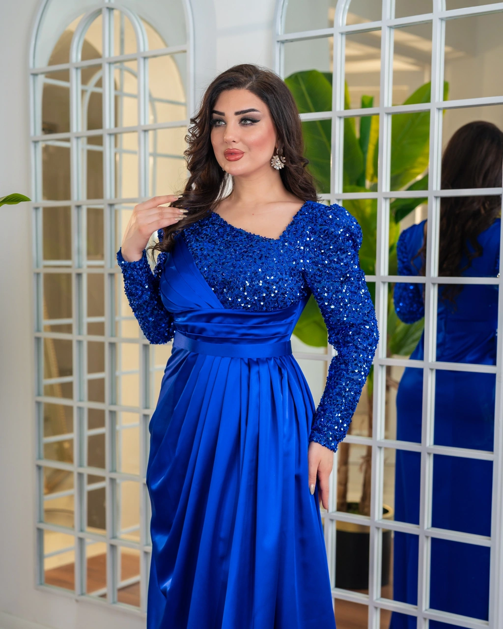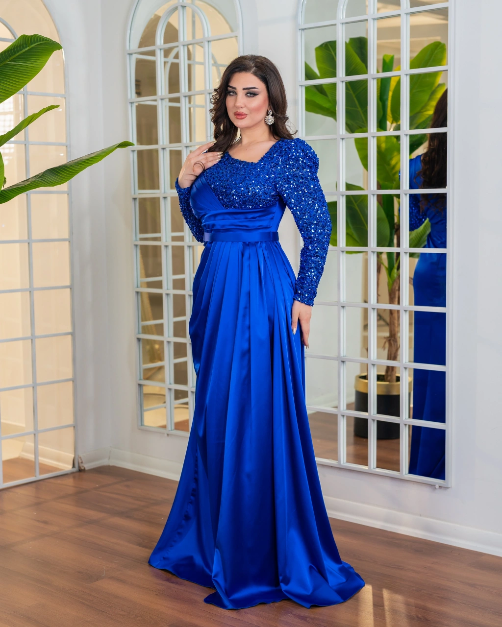 Zamansız şıklığı modern detaylarla buluşturan bu uzun abiye elbise, özel günlerde güçlü ve zarif bir siluet sunar. Üst bedeninde yer alan payetli kumaş, elbiseye sofistike bir ışıltı kazandırırken; bel kısmından başlayan drapeli yapı vücut hatlarını dengeli ve estetik şekilde sarar.