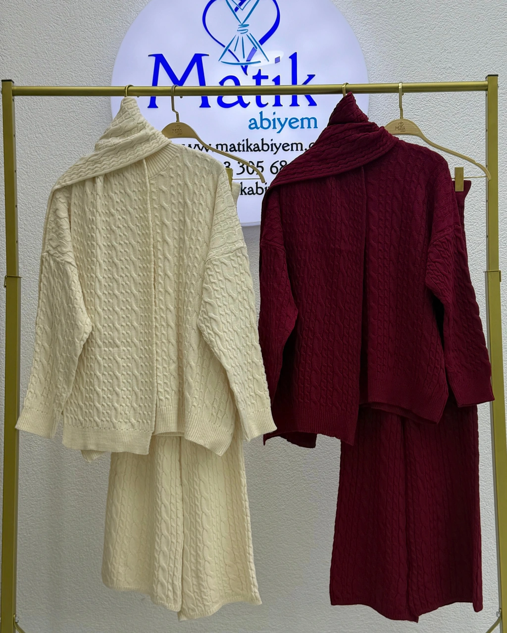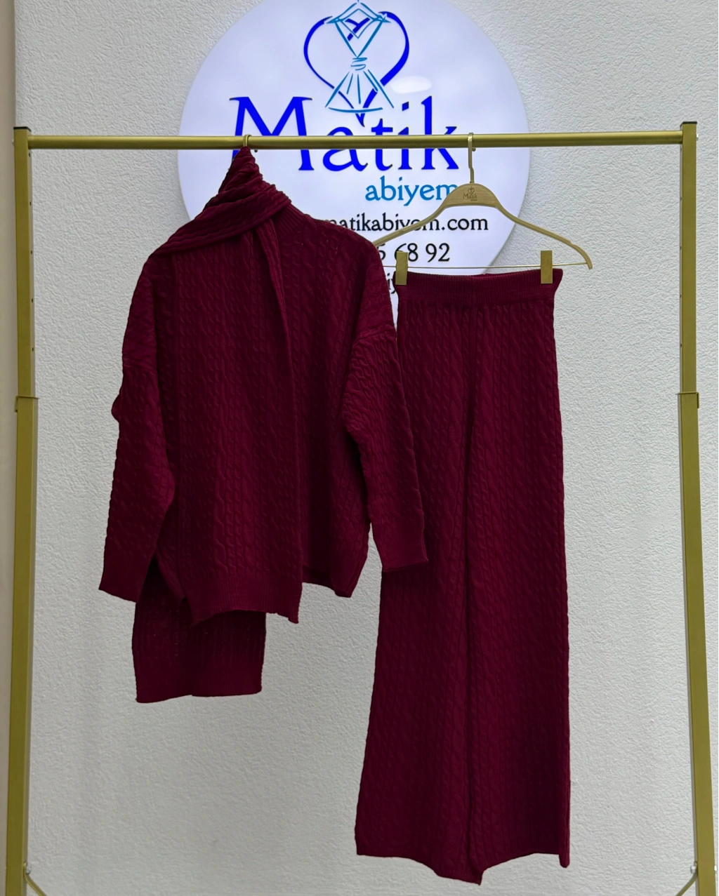 • Takım İçeriği: Triko üst + triko alt + uyumlu triko atkı