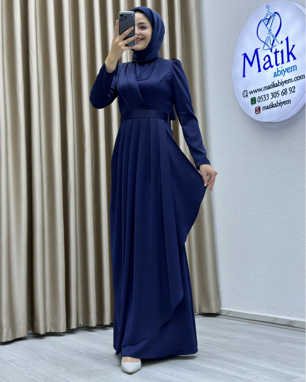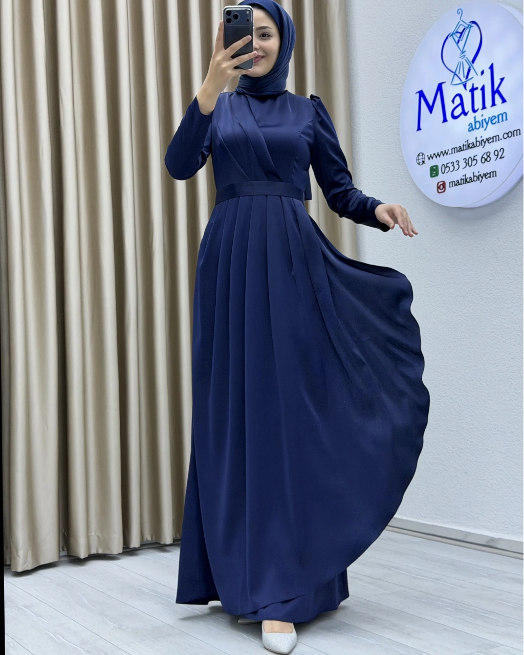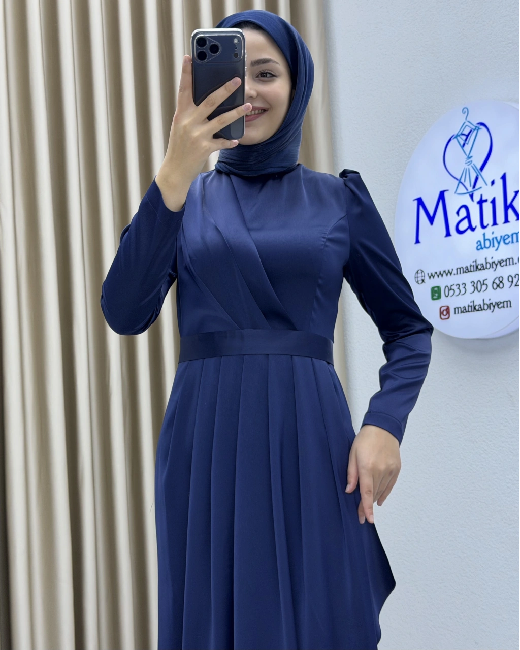 Zarif duruşu ve akışkan saten kumaşıyla öne çıkan Zara Saten Abiye, modern tasarımı ve rahat kesimiyle özel günlerde şıklığı garanti eder. Yüksek yaka, uzun kol ve beldeki drape detaylarıyla hem sade hem de etkileyici bir görünüm sunar. Nişan, söz, mezuniyet ve tüm davetler için ideal bir seçimdir.