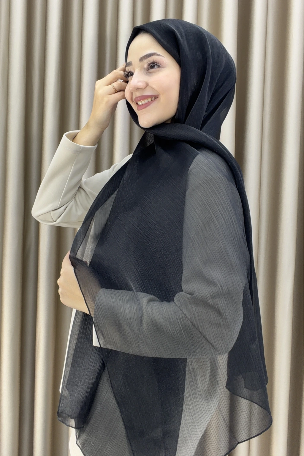Modern ve şık tasarımıyla öne çıkan bu şal, yumuşak dokusu ve dökümlü yapısıyla gün boyu konfor sunar. İnce ve hafif kumaşı sayesinde hem günlük hayatta hem de özel günlerde rahatlıkla kullanılabilir. Kaymayan yüzeyi sayesinde kolay şekil alır ve uzun süre formunu korur. Sezonun en trend tarzlarını yansıtan bu model, zarafeti ve sadeliği bir arada sunarak her stile mükemmel bir uyum sağlar. İster klasik ister modern kombinlerde kusursuz bir tamamlayıcı aksesuar olarak tercih edilebilir.