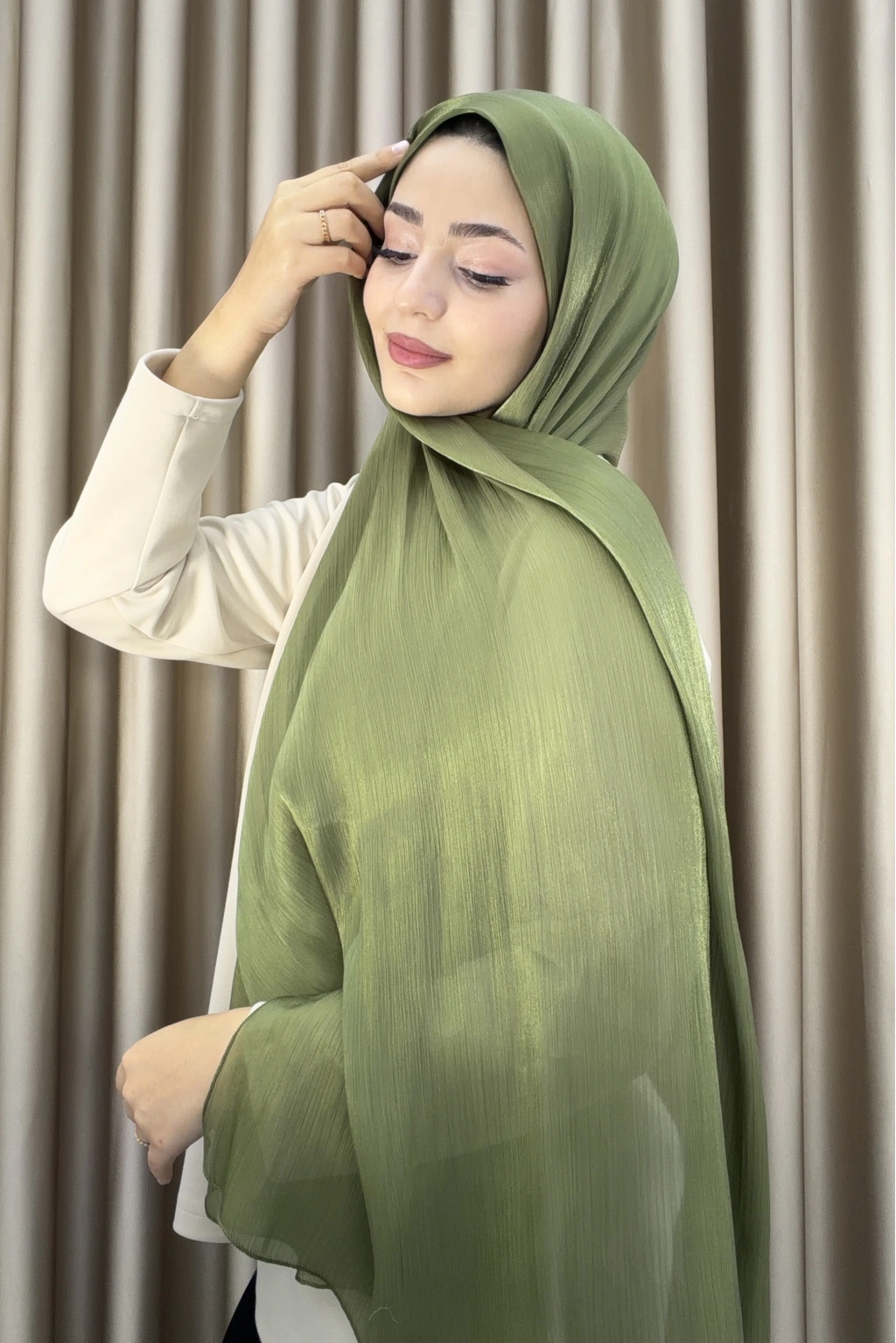 Sofia Saten Zarif Dökümlü Şal - Hafif ve Konforlu Şal