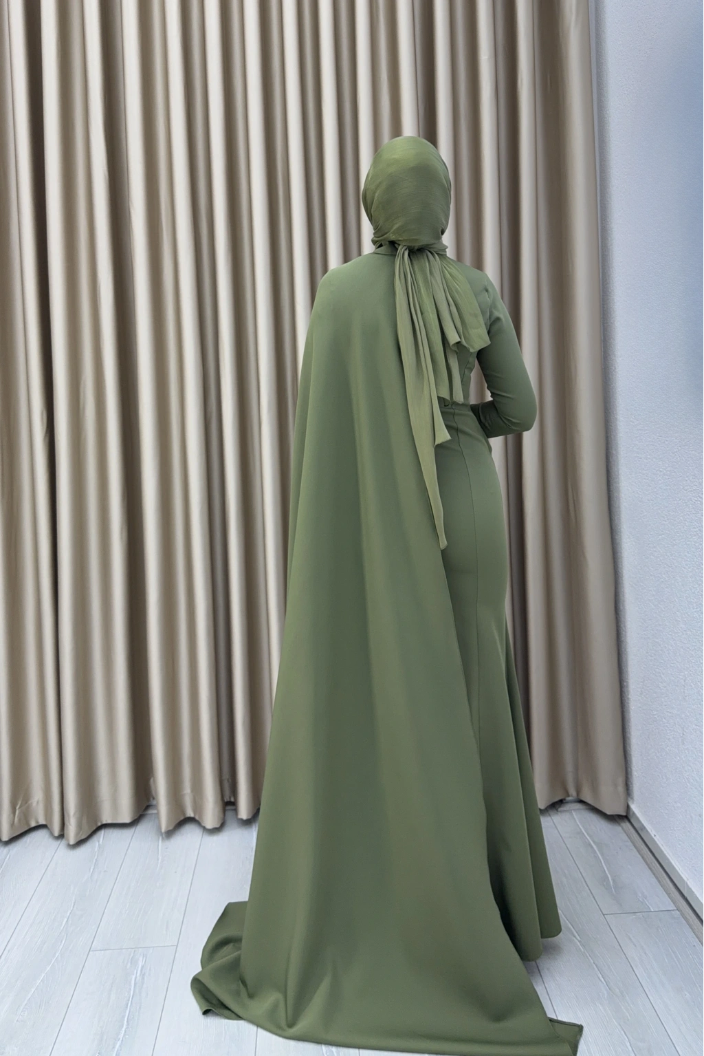 • Model: Drapeli çiçek detaylı tesettür abiye