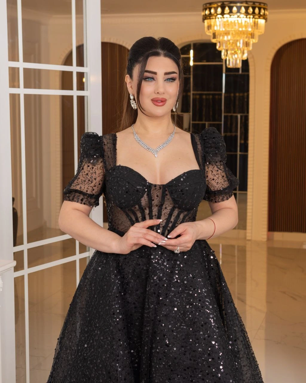 • Romantik silüeti ve ışıltılı dokusuyla öne çıkan, korse detaylı ve tül etekli özel tasarım midi boy elbise; davetler, nikâh ve özel günler için zarif bir tercih.